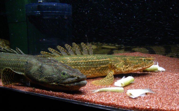 小魚やエビ、昆虫など自然界では様々なものを捕食し、栄養を得ているとされるポリプテルス。